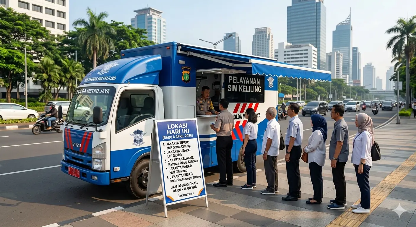 Jak Buzz – Layanan SIM Keliling Jakarta Hari Ini kembali hadir untuk memudahkan warga yang ingin melakukan perpanjangan masa berlaku Surat Izin Mengemudi tanpa harus mengantre lama di kantor Satpas pusat.